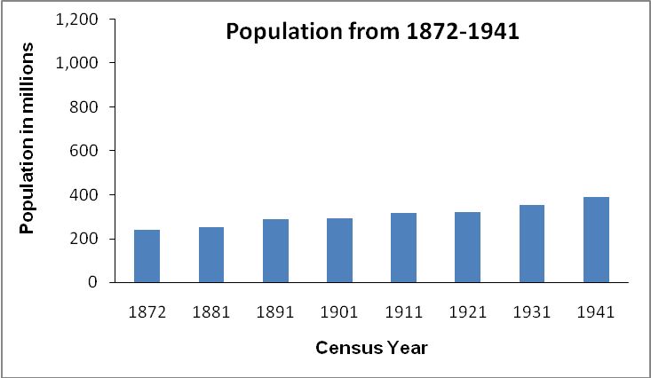 From figures 7 & 8 above it is clear that for most part of the British rule population growth was more or less stagnant. Over a period of 70 years the population grew by barely 100 million. The effect of devastating british made genocides can be seen in the census reports of 1881,1901,1921.What the graphs do not show is the terrible Bengal genocide of 1943 in which nearly seven million people died, as the last census under the Christian British Raj was done in 1941.
